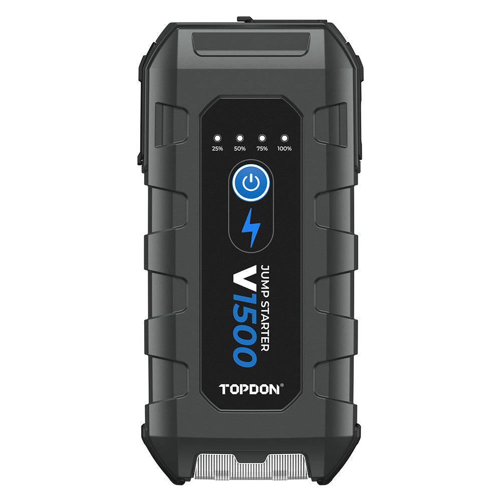 TOPDON's V1500 leads the way as a portable jump starter, delivering 1500 peak amps for instant jump-starts. Quickly and safely jump 12V lead-acid batteries in seconds for cars, boats, motorcycles, and trucks with up to 6.5L gasoline or 4.0L diesel engines. The V1500 doubles as a power bank for phones, tablets, and other devices, and can also supply power to 12V DC devices. Use the V1500's boost function to jump particularly difficult batteries. The V1500 is your all-in-one solution for power and battery-related emergencies.